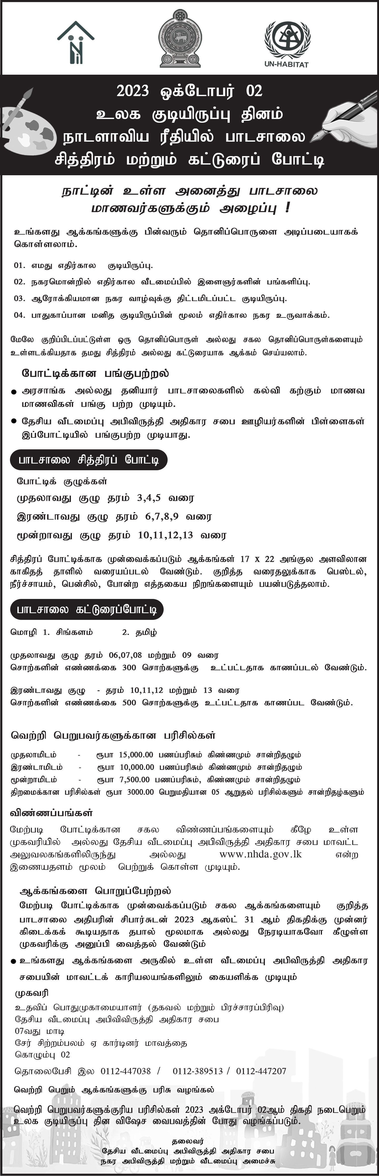 World Habitat Day- School Art & Essay Competition